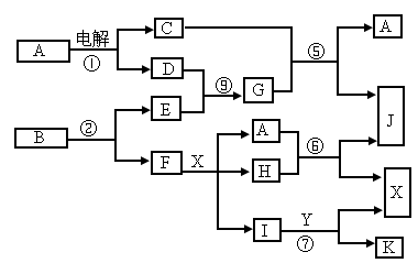圖中,A是一種無色液體,G是極易溶于水的堿性氣體,Y是胃酸的主要成分,K是不溶于稀硝酸的白色沉淀,反應(yīng)⑤是工業(yè)制X的主要反應(yīng)之一.