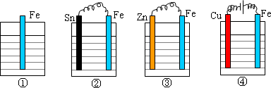 下圖各容器中盛有海水,鐵在其中被腐蝕時(shí)由快到慢的順序是