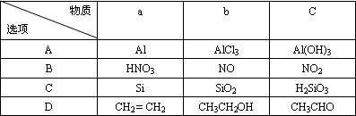 下表所列各組物質(zhì)中,物質(zhì)之間通過一步反應(yīng)就能實(shí)現(xiàn)如圖所示轉(zhuǎn)化的是