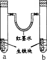 下圖裝置中,U型管內(nèi)為紅墨水,a、b試管內(nèi)分別盛有食鹽水和氯化銨溶液,各加入生鐵塊,放置一段時(shí)間.下列有關(guān)描述錯(cuò)誤的是