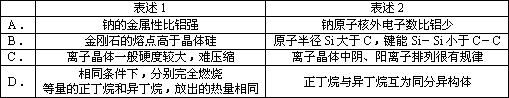 下列有關(guān)物質(zhì)性質(zhì)、結(jié)構(gòu)的表述均正確,且存在因果關(guān)系的是________