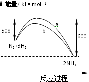 b曲線是加入鐵觸媒時的能量變化曲線 |