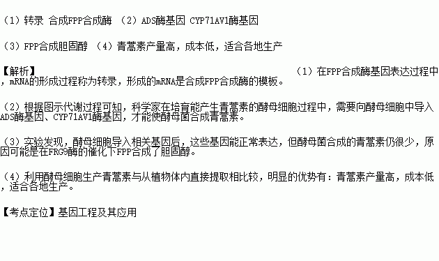 (1)在FPP合成酶基因表達(dá)過(guò)程中,mRNA的形成過(guò)程稱為 ,該分子的作用是作為圖中哪種物質(zhì)的模板。