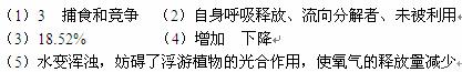 (5)該地區(qū)為了發(fā)展經(jīng)濟,開辦了一個采礦場,土體、土壤和植被遭到嚴重的破壞,采礦中的混濁黏土水排放到該水域生態(tài)系統(tǒng)中。經(jīng)檢測發(fā)現(xiàn),水中的含氧量大幅度下降,原因是 。