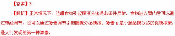A.正常情況下,咀嚼食物引起胰液分泌是非條件反射
