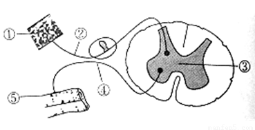 下圖表示人體反射弧的結(jié)構(gòu)模式圖,據(jù)圖回答問(wèn)題。