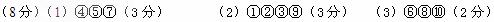 (8分)將下列生物的細(xì)胞或結(jié)構(gòu)進(jìn)行歸類,將其前面的數(shù)字填寫在相應(yīng)位置上。