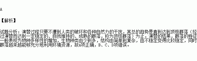 在無人為因素的干擾下,群落演替的總趨勢是