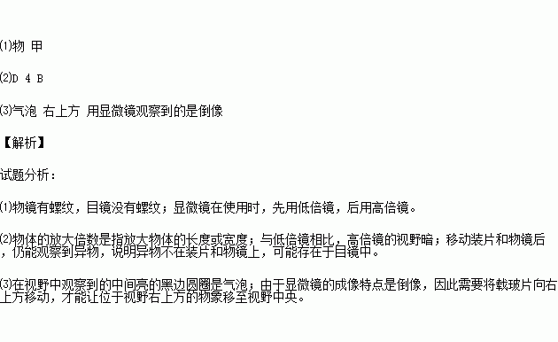 (3)用顯微鏡觀察標(biāo)本時,一位同學(xué)在觀察酵母菌細(xì)胞時發(fā)現(xiàn)視野右上方有一中間亮的黑邊圓圈,于是想將它移到視野中央仔細(xì)觀察,請根據(jù)以上敘述回答: