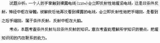 15. 一個(gè)人的手掌觸到裸露電線 (110V)會(huì)立即反射性地握緊電線,被解救后他再次看到裸露的電線,會(huì)立即反射性地把手縮回,這兩種反射的正確敘述是