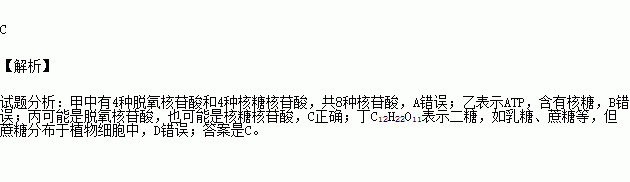 D.在小鼠的體細(xì)胞內(nèi)檢測到的化合物丁很可能是蔗糖