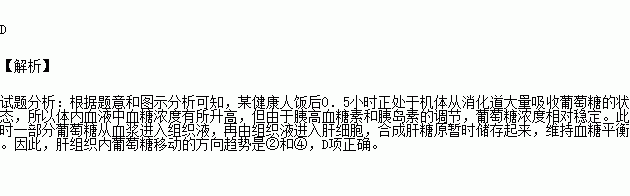 如圖是某健康人飯后0.5小時肝組織內(nèi)葡萄糖移動的方向趨勢示意圖,其中正確的是
