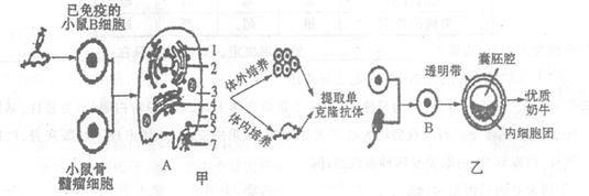 圖甲表示利用生物技術(shù)制備分泌抗X的單克隆抗體的過程;圖乙表示體外受精培養(yǎng)優(yōu)質(zhì)奶牛的過程。請據(jù)圖回答:
