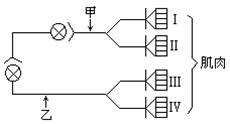 C.刺激甲,I—Ⅳ都不收縮 D.刺激乙,I一Ⅳ都收縮