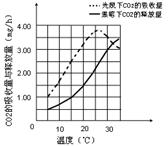 以測定的CO2吸收量與釋放量為指標,研究溫度對某綠色植物光合作用與呼吸作用的影響,結果如圖所示。下列分析正確的是 ( )