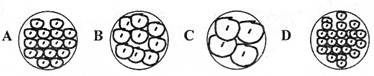 若用一顯微鏡觀察同一標(biāo)本4次,每次僅調(diào)整目鏡或物鏡和細(xì)準(zhǔn)焦螺旋,結(jié)果如下圖所示。試問其視野最暗的是( )