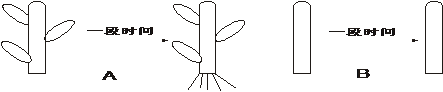 下圖A、B為兩插條扦插一段時間后的生長情況,其主要原因是 ( )