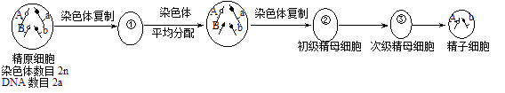 下圖為精原細(xì)胞增殖以及形成精子過(guò)程示意圖。圖中標(biāo)明了染色體與染色體上的基因。設(shè)①③細(xì)胞都處于染色體的著絲點(diǎn)向兩極移動(dòng)的時(shí)期。據(jù)圖分析,下列敘述不正確的是( )
