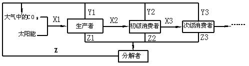 B.X1過程吸收的CO2總量與Y1、Y2、Y3、……及Z過程釋放的CO2總量相等