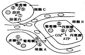 (1)在肝細(xì)胞A中,促進(jìn)①過程的激素主要是 。
