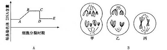 (1)圖A中AB段形成的原因是 ,該過程發(fā)生于細胞分裂的 期。A圖中CD段形成的原因是 。