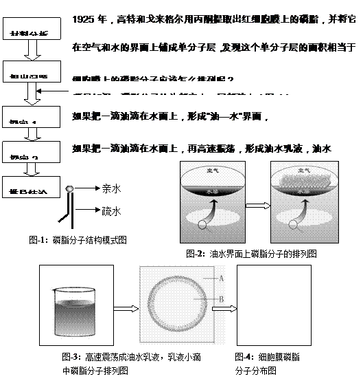 (2)請根據探究-1和探究-2的結果推導細胞膜上磷脂分子的排布情況,在圖-4中繪出其簡圖(片段)。