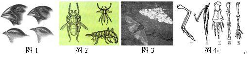 下列四組圖是關(guān)于生物進化方面的證據(jù)。下列相關(guān)敘述中,正確的是