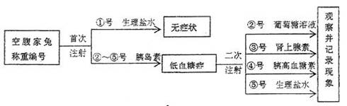 (09上海十四校聯(lián)考)如下實驗流程為探究血糖調(diào)節(jié)的影響因素,實驗中5只家兔的注射劑量和生理指標(biāo)均按單位體重計算。下列敘述不正確的是