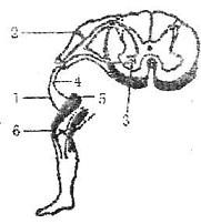 (09上海十四校聯(lián)考)右圖為膝跳反射的反射弧,下列關(guān)于該反射弧的敘述正確的是
