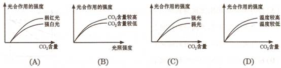 (09甘肅省一模)下面各圖表示在一定范圍內(nèi),不同環(huán)境因素與水稻葉片光合作用強(qiáng)度的關(guān)系,其中錯(cuò)誤的是