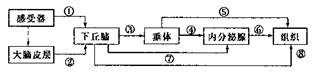 D.感受器→①→下丘腦→⑦→內(nèi)分泌腺可構(gòu)成一個(gè)反射弧