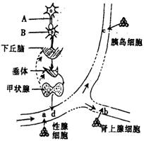 右圖是人體部分組織示意圖,a、b、c、d代表人體內(nèi)不同激素,下列有關(guān)敘述中,錯(cuò)誤的是