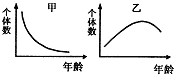 圖甲、圖乙為某種生物種群的年齡組成曲線,如不考慮其他因素,種群甲和種群乙未來個體數(shù)量的發(fā)展趨勢是( )