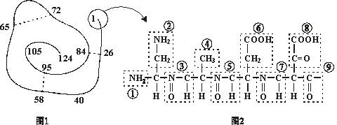 下面是某蛋白質(zhì)的肽鏈結(jié)構(gòu)示意圖(圖1,其中數(shù)字為氨基酸序號)及部分肽鏈放大圖(圖2),請據(jù)圖判斷下列敘述中正確的是( )