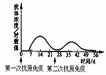一般情況下,用抗原免疫機(jī)體,血清中抗體濃度會(huì)發(fā)生相應(yīng)變化。如果在第二次免疫與第一次免疫所用的抗原相同且劑量相等,下列四圖中能正確表示血清中抗體濃度變化的是