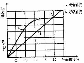 (3)當(dāng)葉面積指數(shù)達(dá) 時(shí),光合作用的物質(zhì)量不再隨葉面積指數(shù)增加而增加,其主要原因是: ;當(dāng)葉面積指數(shù)大約在 范圍時(shí),對(duì)農(nóng)作物增產(chǎn)最有利。