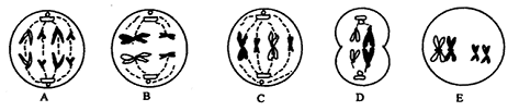 (1)A、B、C、D、E中屬于有絲分裂的是___________,屬于減數(shù)分裂的是___________。