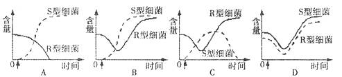 在肺炎雙球菌的轉(zhuǎn)化實(shí)驗(yàn)中,將加熱殺死的S型細(xì)菌與R型細(xì)菌相混合后,注射到小鼠體內(nèi),小鼠死亡,則小鼠體內(nèi)S型、R型細(xì)菌含量變化情況最可能是下圖哪個(gè)選項(xiàng)