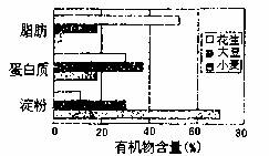 實驗測得小麥、大豆、花生三種生物干種子中三大類有機物含量如圖,有關(guān)敘述正確的是