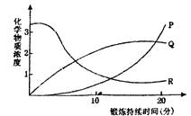 一運動員正在進行長跑鍛煉,從他的大腿肌細胞中檢測到3種化學物質(zhì),其濃度變化如下圖。圖中P、Q、R三曲線依次代表