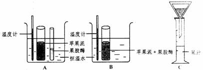 ①果膠酶與蘋果泥分裝于不同試管,在10℃水浴中恒溫處理10分鐘(如圖 A )
