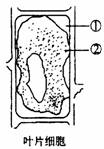 將新鮮的苔蘚植物葉片,放入其中加有少量紅墨水的質(zhì)量濃度為0 . 3 g/ml 的蔗糖溶液中,在顯微鏡下觀察,你會看到苔蘚細胞的狀態(tài)如圖所示。此時,部位①和②的顏色分別是