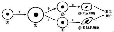 下圖為人體某早期胚細胞所經(jīng)歷的生長發(fā)育階段示意圖,圖中①—⑥為各個時期的細胞,a – c表示細胞所進行的生理過程。據(jù)圖分析,下列敘述正確的是