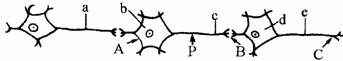 下圖表示三個通過突觸連接的神經(jīng)元。現(xiàn)于箭頭P處施加一強刺激,假定經(jīng)過一定時間T測得圖中各點的動作電位,其時間可能值記作Ta、Tb、Tc、Td、Te(對應(yīng)各點);又測得a、b、c、d、e各點距刺激點神經(jīng)纖維總長分別為Sa、Sb、Sc、Sd、Se。若興奮在不同神經(jīng)元上傳導(dǎo)的速率相同,則下列關(guān)系式中正確的是