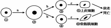 下圖為人體細胞的分裂、分化、衰老和死亡過程的示意圖,圖中①—⑥為各個時期的細胞,a~c表示細胞所進行的生理過程。據(jù)圖分析,下列敘述正確的是