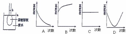 下圖中的滲透裝置,開始時的液面高度為a,停止上升時的高度為b,若每次停止上升后都將玻璃管中高出燒杯液面的部分吸出,則吸出蔗糖溶液的次數(shù)與a、b液面間的高度差之間的關(guān)系是