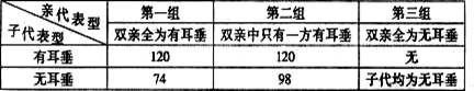 B.從第一、三組的調(diào)查結(jié)果可以判斷出,隱性性狀是無耳垂