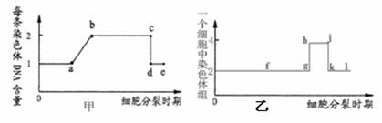 甲、乙兩圖分別表示某動物體(AaBb)內(nèi)細(xì)胞分裂時一條染色體上DNA的含量變化及一個細(xì)胞中染色體組的變化。下列敘述錯誤的是( )