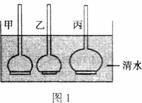如右圖2中曲線1、2、3表示漏斗液面高度隨時間的變化情況。則曲線1、2、3與甲、乙、丙三個裝置的對應(yīng)關(guān)系應(yīng)是( )