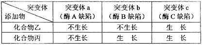 現(xiàn)有三種營養(yǎng)缺陷型突變體,在添加不同化合物的基本培養(yǎng)基上的生長(zhǎng)情況如下表: